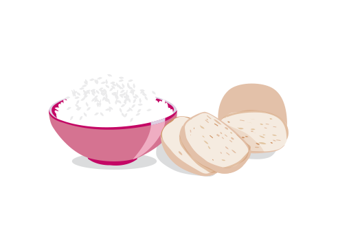 Cereales: arroz blanco, harina de avena, sémola (de maíz)