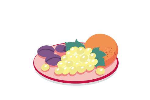 Frutas: naranjas, uvas, ciruelas y bayas, además de plátanos y manzanas en cantidades moderadas