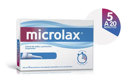 MICROLAX® ayuda a aliviar el estreñimiento de manera rápida, entre 5 y 20 minutos, con un buen nivel de control. El microenema de 5 ml puede introducirse suavemente en el recto y su uso es fácil e higiénico.Los ingredientes activos (citrato de sodio, lauril sulfoacetato de sodio y sorbitol) funcionanactúan juntos para liberar el agua asociada en las heces y aflojarlas. El alivio predecible puede obtenerse usualmente entre 5 y 20 minutos.